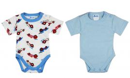 Rövid ujjú 2db-os vállon patentos, vékony pamut baba body szett.
