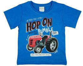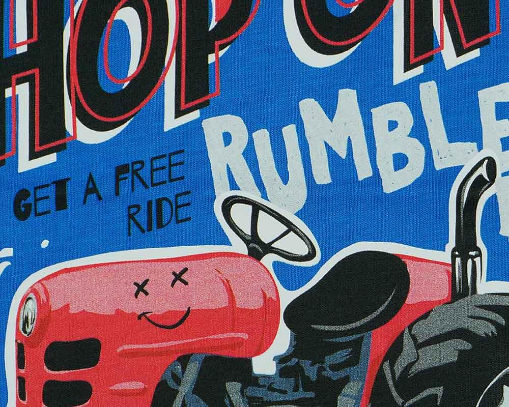 Traktoros mintával nyomott, rövid ujjú pamut kisfiú póló.