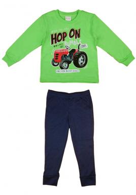 -Traktoros mintával nyomott hosszú ujjú pamut pizsamafelső