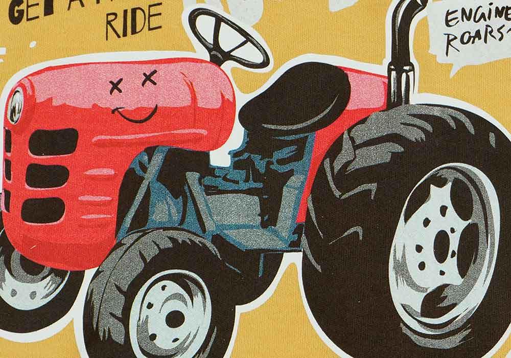 -Traktoros mintával nyomott hosszú ujjú pamut pizsamafelső