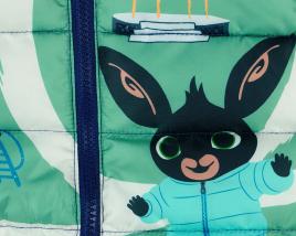 Bing nyuszis mintával nyomott, oldalt zsebes, vízlepergetős, kapucnis, polár béléses télikabát.