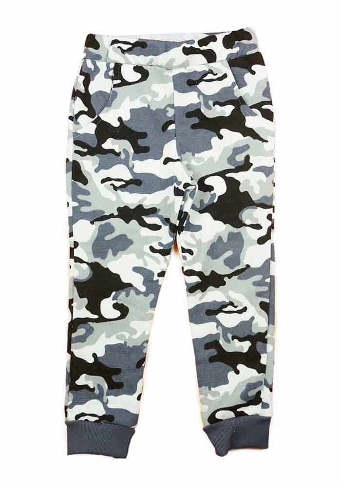 Terepmintás,belül bolyhos, gumis derekú, oldalt zsebes, gumis derekú fiú szabadidőnadrág.
