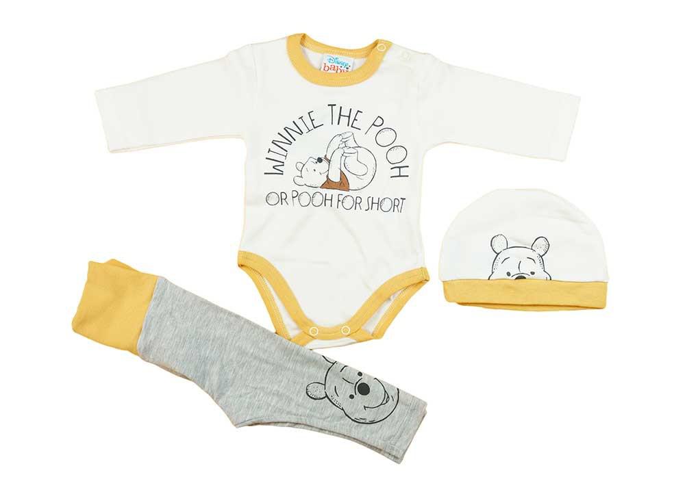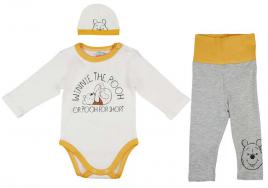 3 részes szett az örök klasszikus Micimackó mintával, amibe tartozik egy alul és vállnál pattentos Micimackó Body, egy Micimackós baba nadrág derekán passzéval és egy Micimackós sapka.