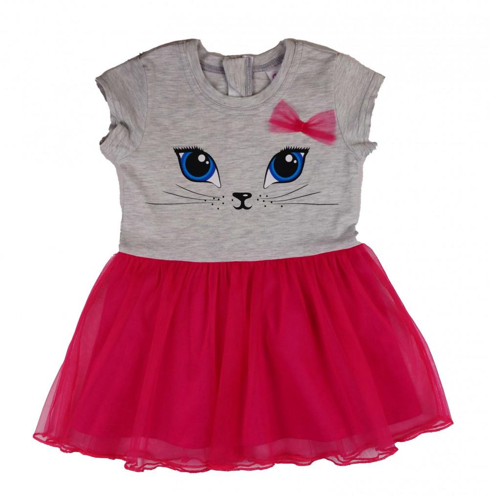 Cicás mintával nyomott, hátul cipzáras, masnival díszített, rövid ujjú tüllös lányka ruha