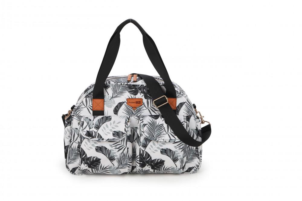 Divatos pelenkázótáska, mely mintájával mindenkit elragad. Tágas zsebekkel így nagyon könnyen használható. A csomagban egy puha pelenkázóbetét is helyet kapott, utazáshoz igazán praktikus. A pelenkázó táska felakasztható a babakocsira, vagy a vállon is hordható.