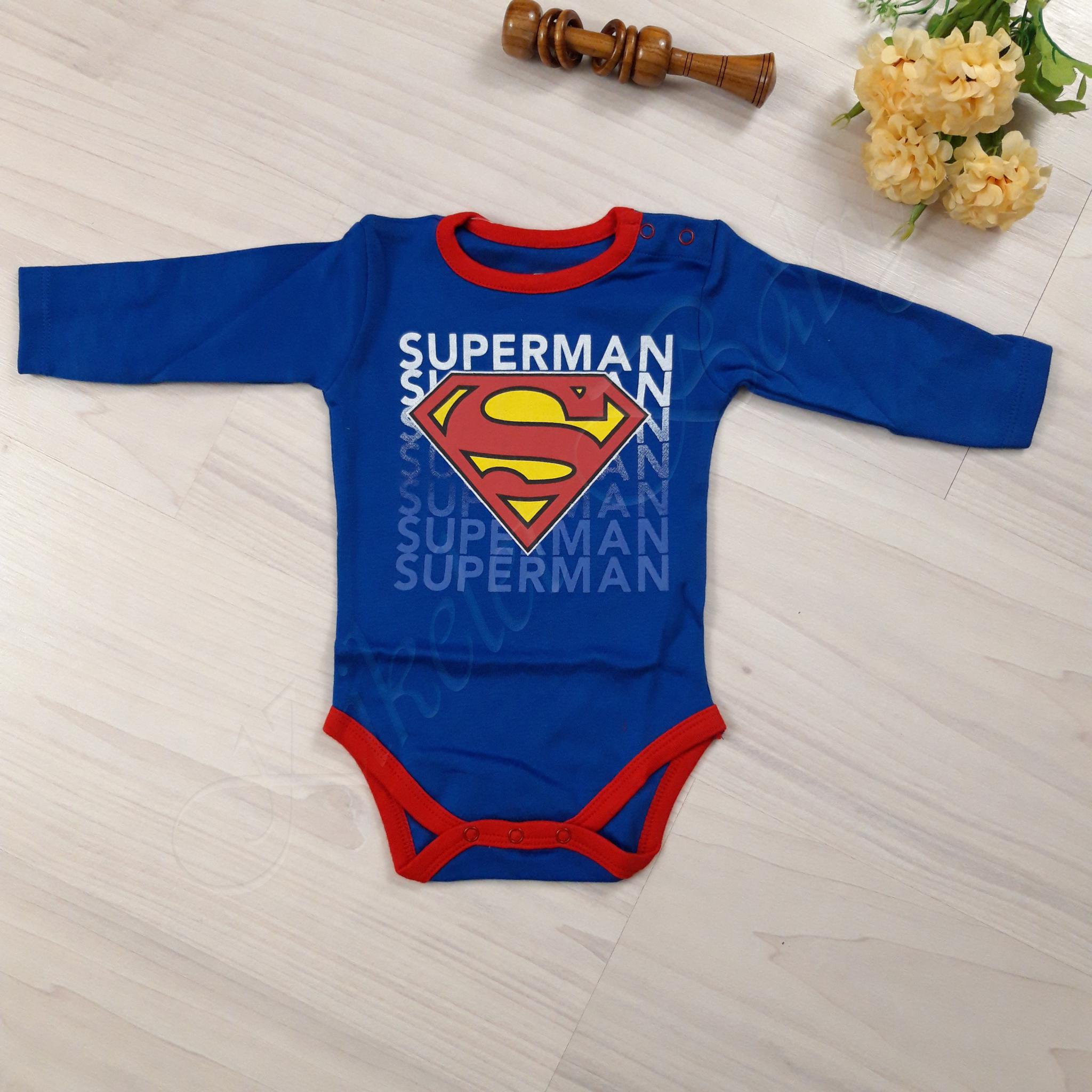 Hosszú ujjú baba body Superman felirattal és emblémával