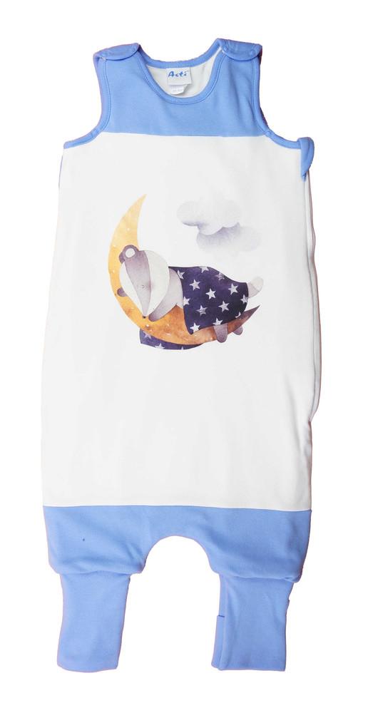 A vállon patentos és oldalán cipzáros megoldás megkönnyíti az öltöztetést, a visszahajtható lábrész pedig lehetővé teszi, hogy a gyermek nappal szabadon mozoghasson, éjszaka pedig kényelmesen pihenhessen.