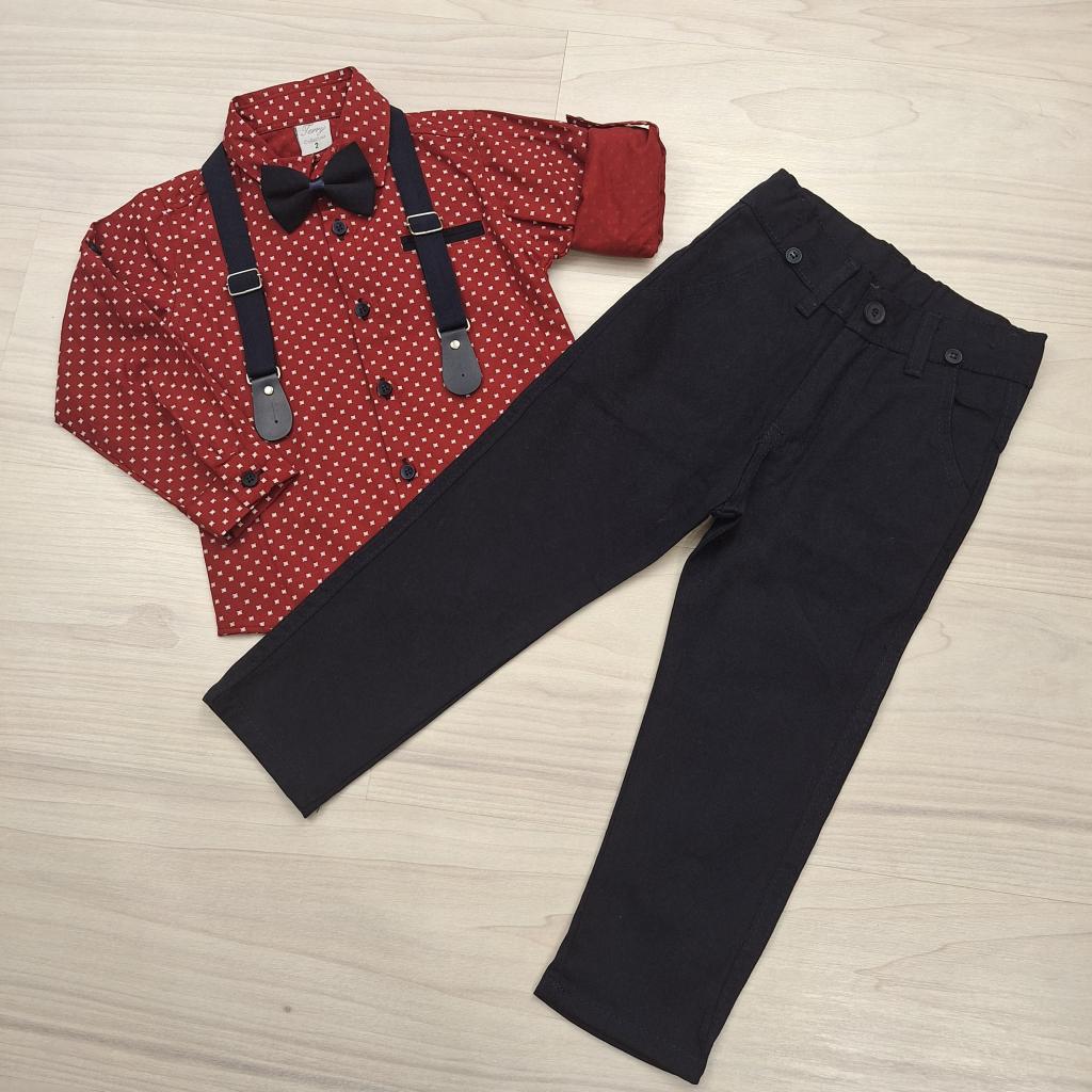 Kisfiú elegáns szett bordó inggel, vászonnadrággal és kiegészítőkkel