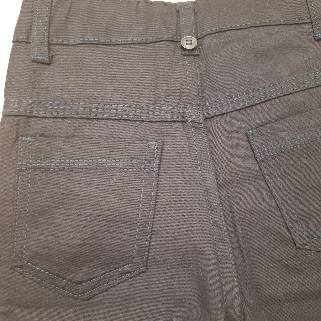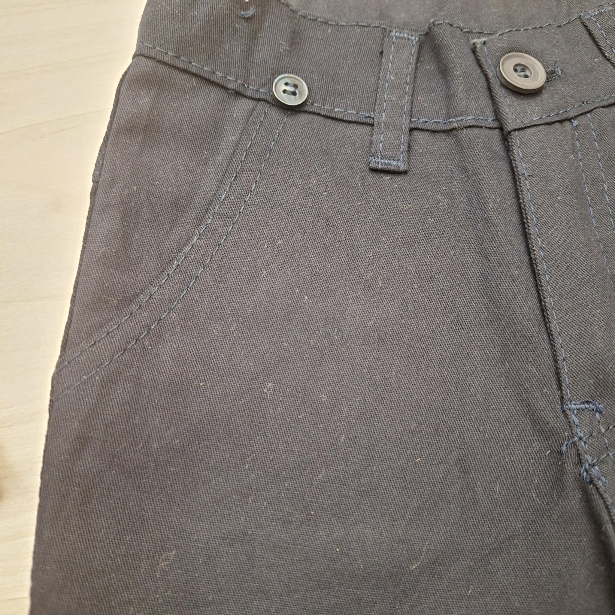 A sötétkék vászonnadrág 100% pamutból készült, így puha, természetes érzetet biztosít a bőrön. A nadrág elöl és hátul is két zsebbel rendelkezik, valamint állítható derékrésszel (gombos gumipánttal) a belsejében, így könnyen egyénre szabható a nadrág bősége.