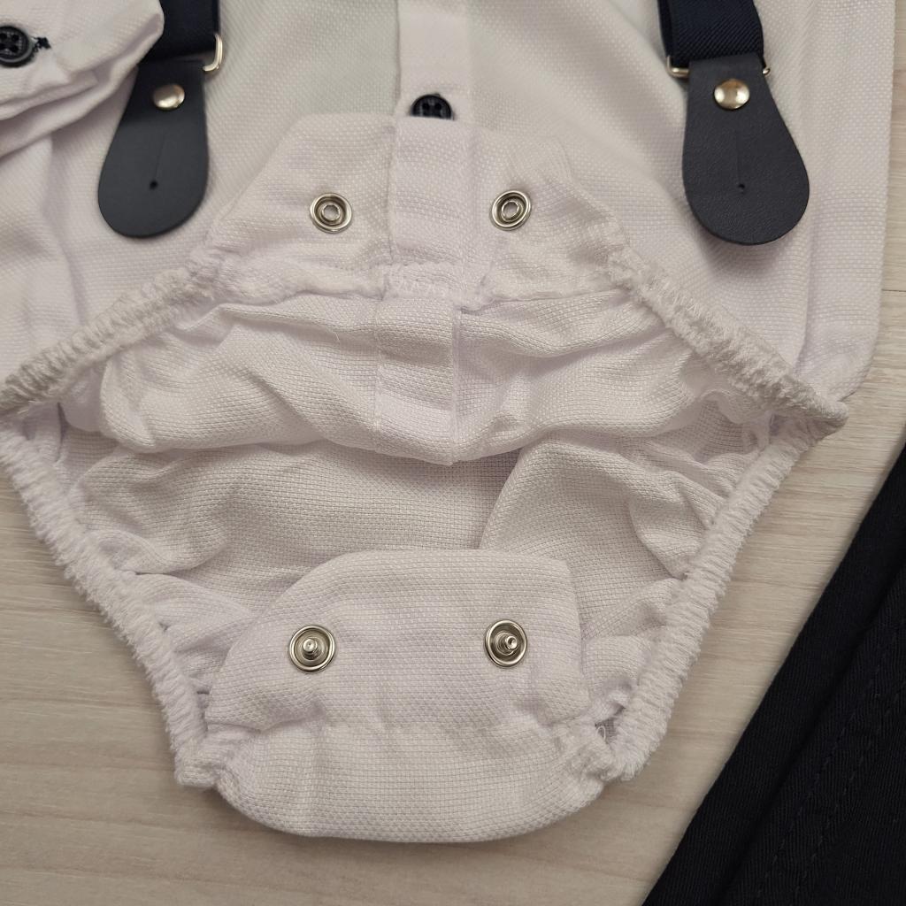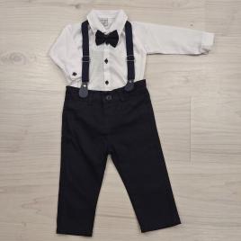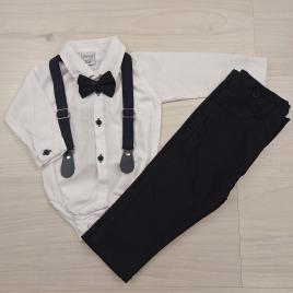 Baba alkalmi szett kisfiúknak fehér bodyval, sötétkék nadrággal és kiegészítőkkel