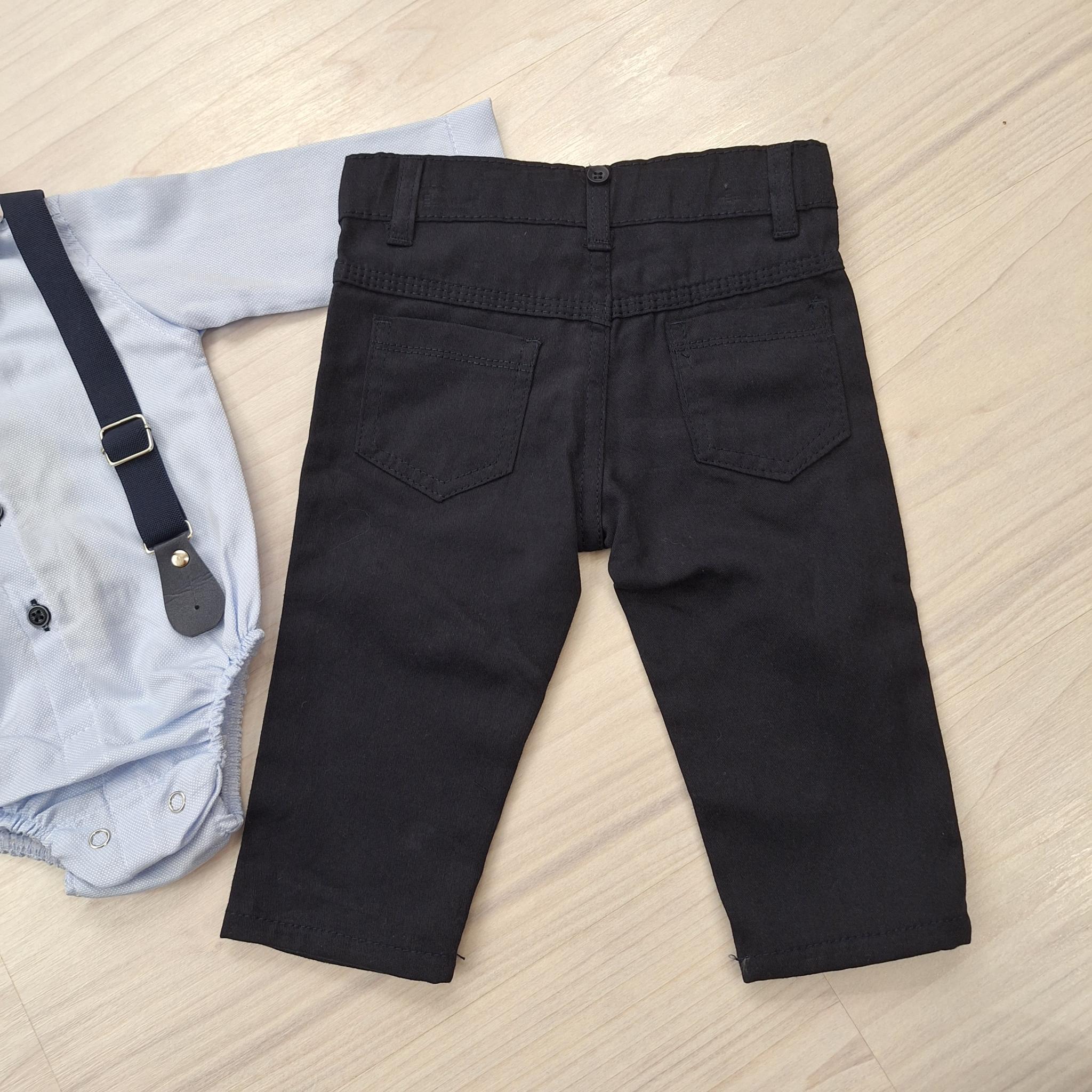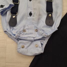Baba alkalmi szett kisfiúknak kék bodyval, fekete nadrággal és kiegészítőkkel
