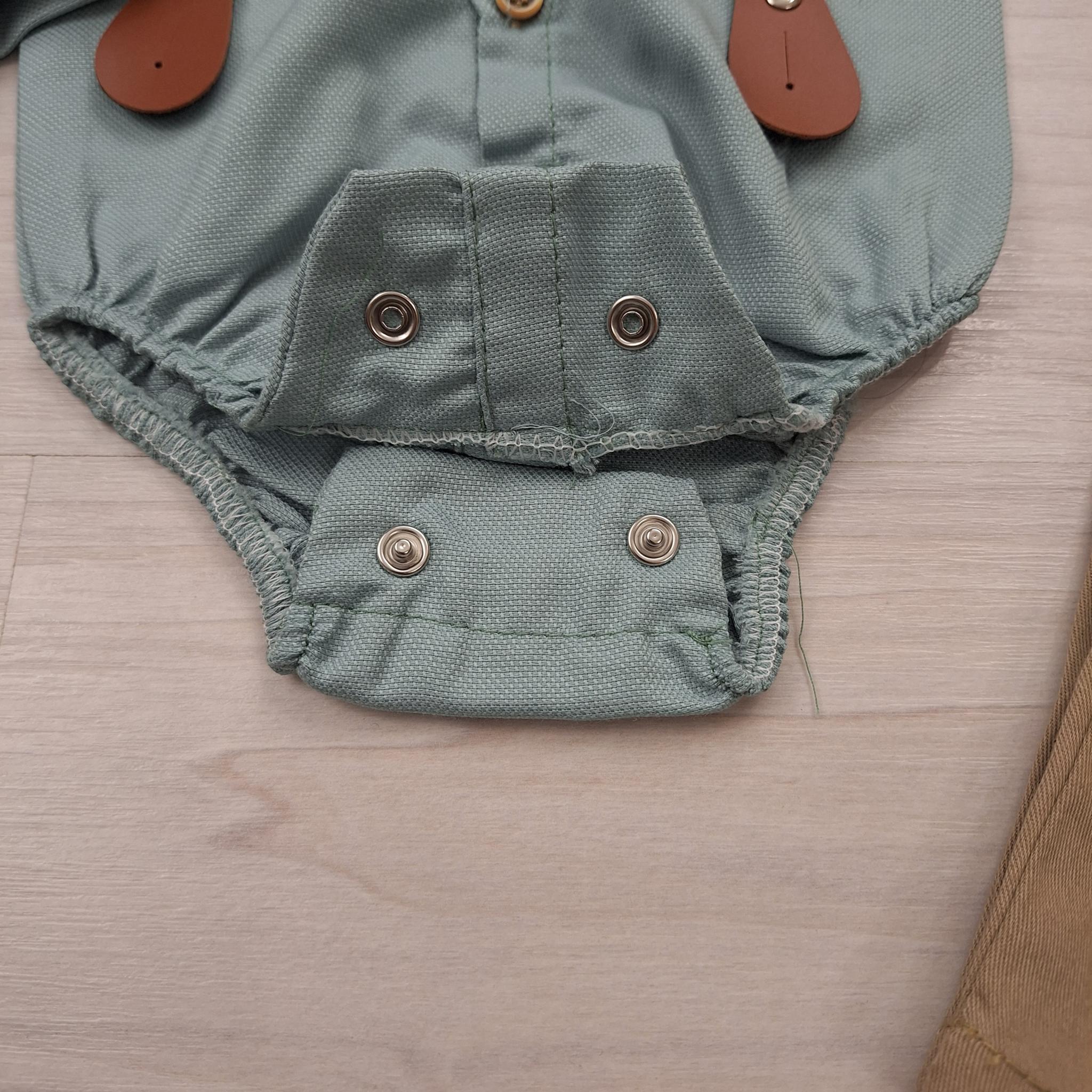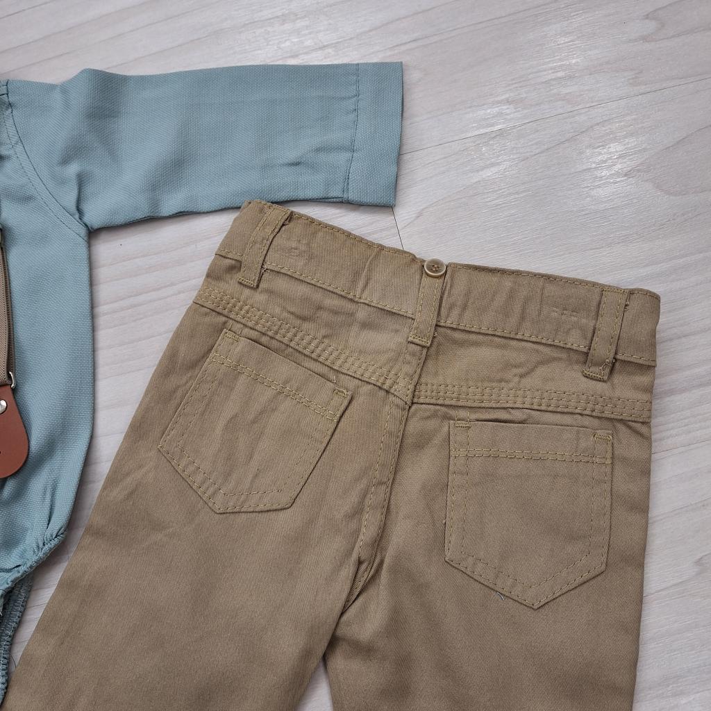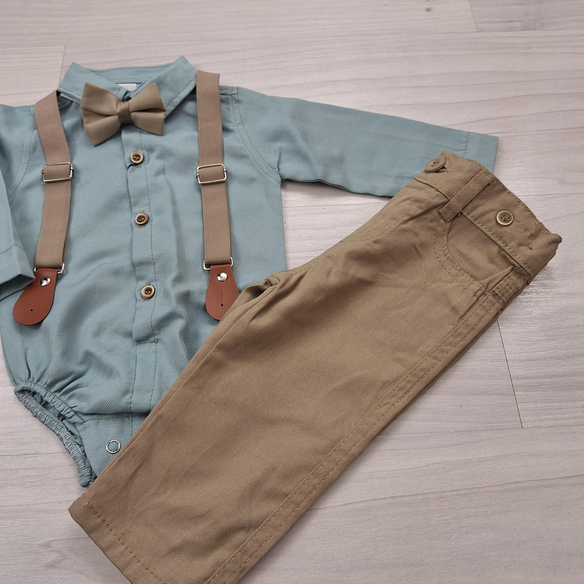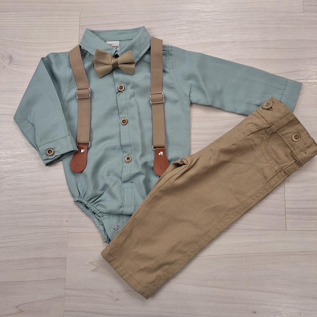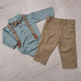 Baba alkalmi szett kisfiúknak mentazöld bodyval, bézs nadrággal és kiegészítőkkel