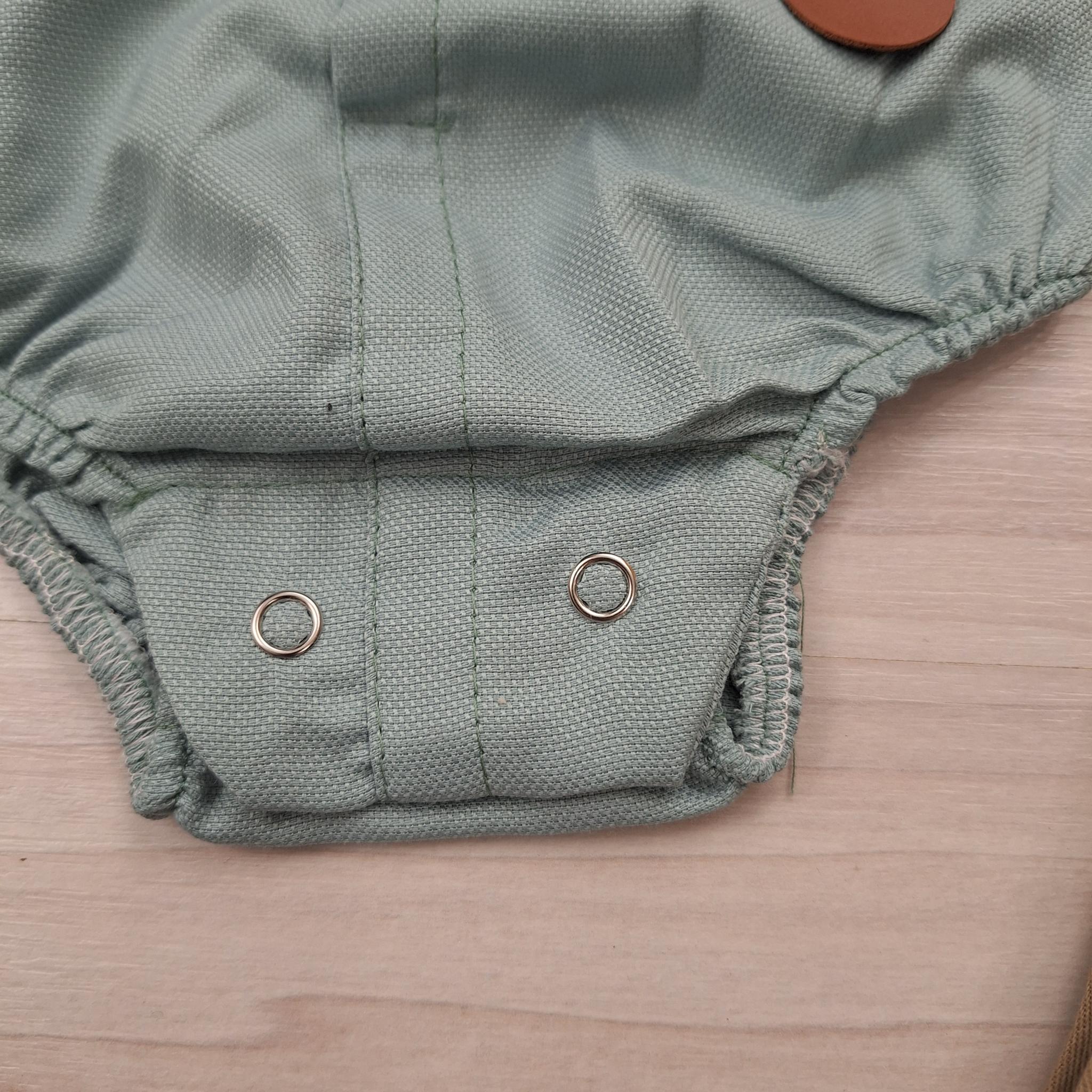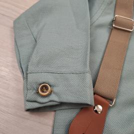 A szett lelke egy mentazöld galléros baba body, amely elöl gombos kialakítású. Az ülepénél patentos záródással készült a könnyebb öltöztetés érdekében. Külön figyelmesség, hogy a body lábrészénél gumírozott szegély gondoskodik a kényelmes illeszkedésről.
