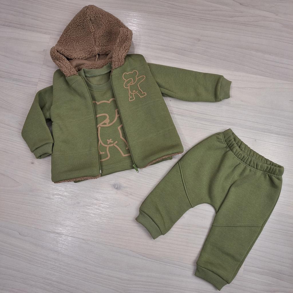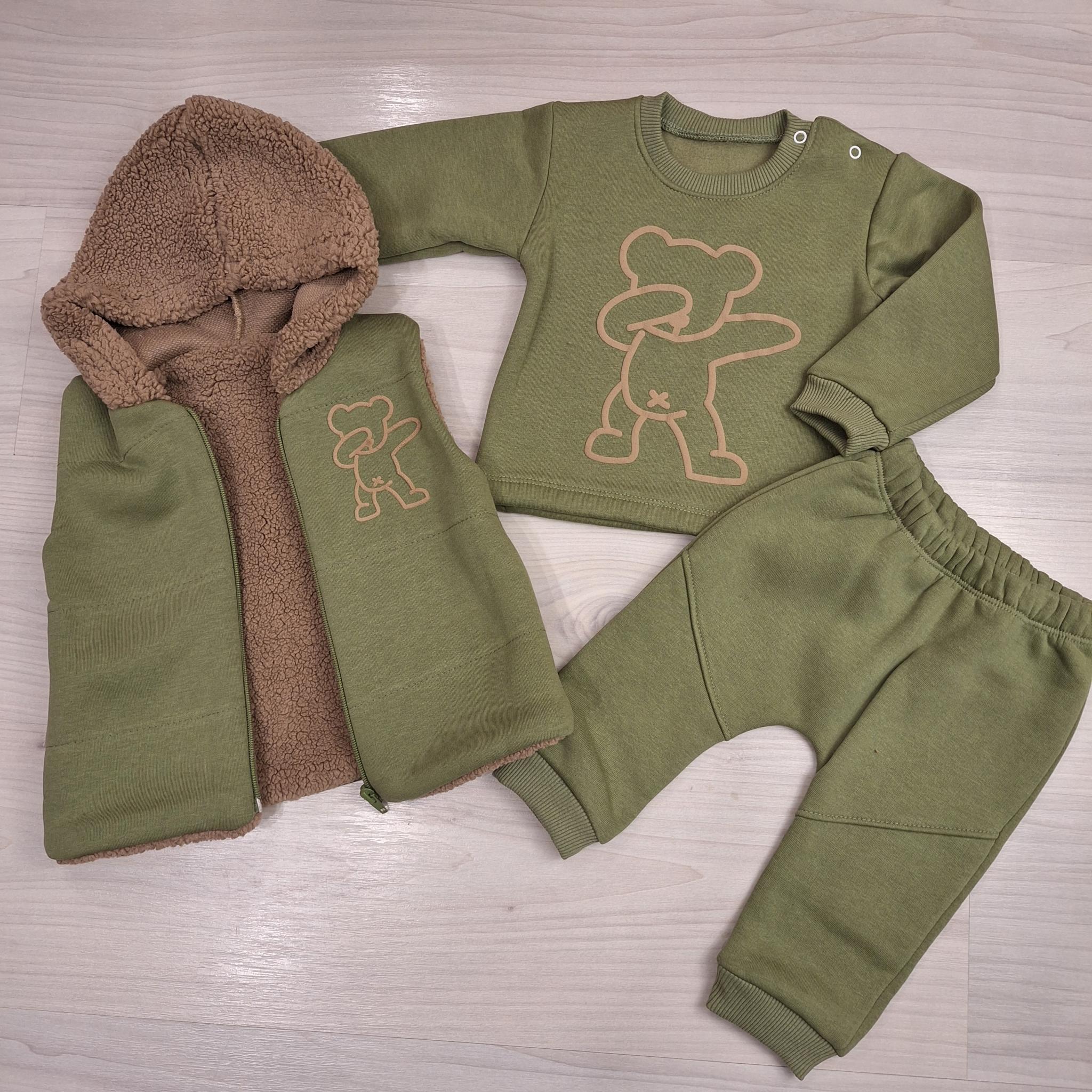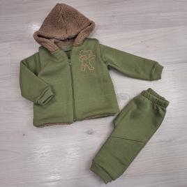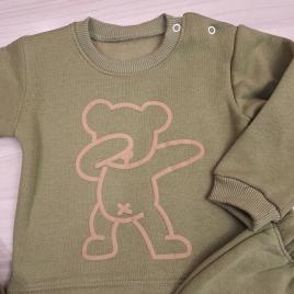 A felső szintén bolyhos belülről, így a baba kényelmesen és melegen fogja érezni magát benne. A kedves maci minta harmonizál a mellénnyel, így a szett igazán összehangolt megjelenést ad.
