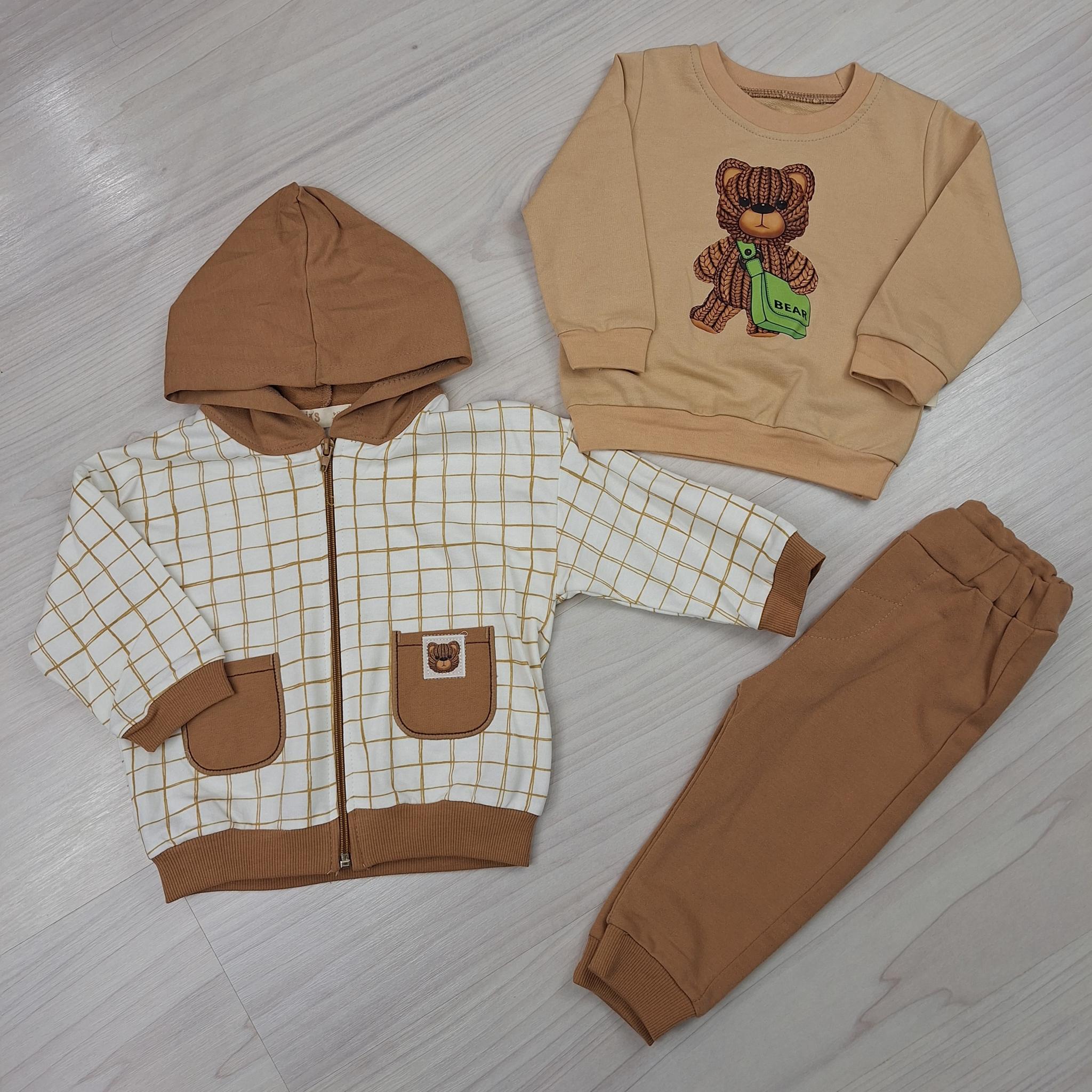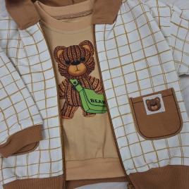 Ez a Necix’s márkájú 3 részes kisfiú szett tökéletes választás a tavaszi–őszi időszakra. Minden darabja 100% pamutból készült, így finom tapintású, légáteresztő és egész napra kényelmes viseletet biztosít a kicsiknek. A szett bájos maci mintájával és harmonikus barna-fehér színvilágával igazán szerethető darab lesz a kisfiúk ruhatárában.