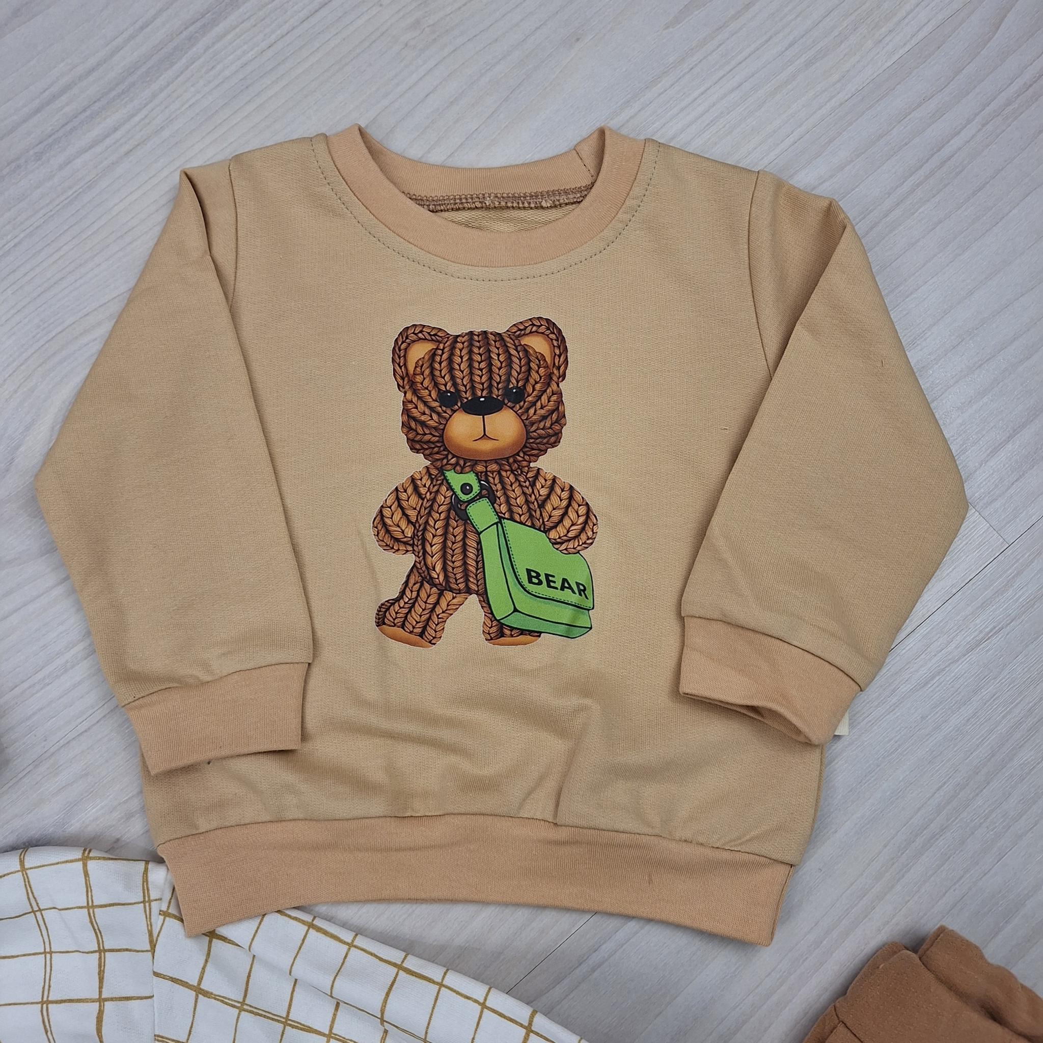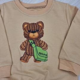 A felső elején aranyos maci minta található, amely összhangban van a pulóver díszítésével. Könnyű, légáteresztő darab, ami kényelmes a rétegezéshez is.