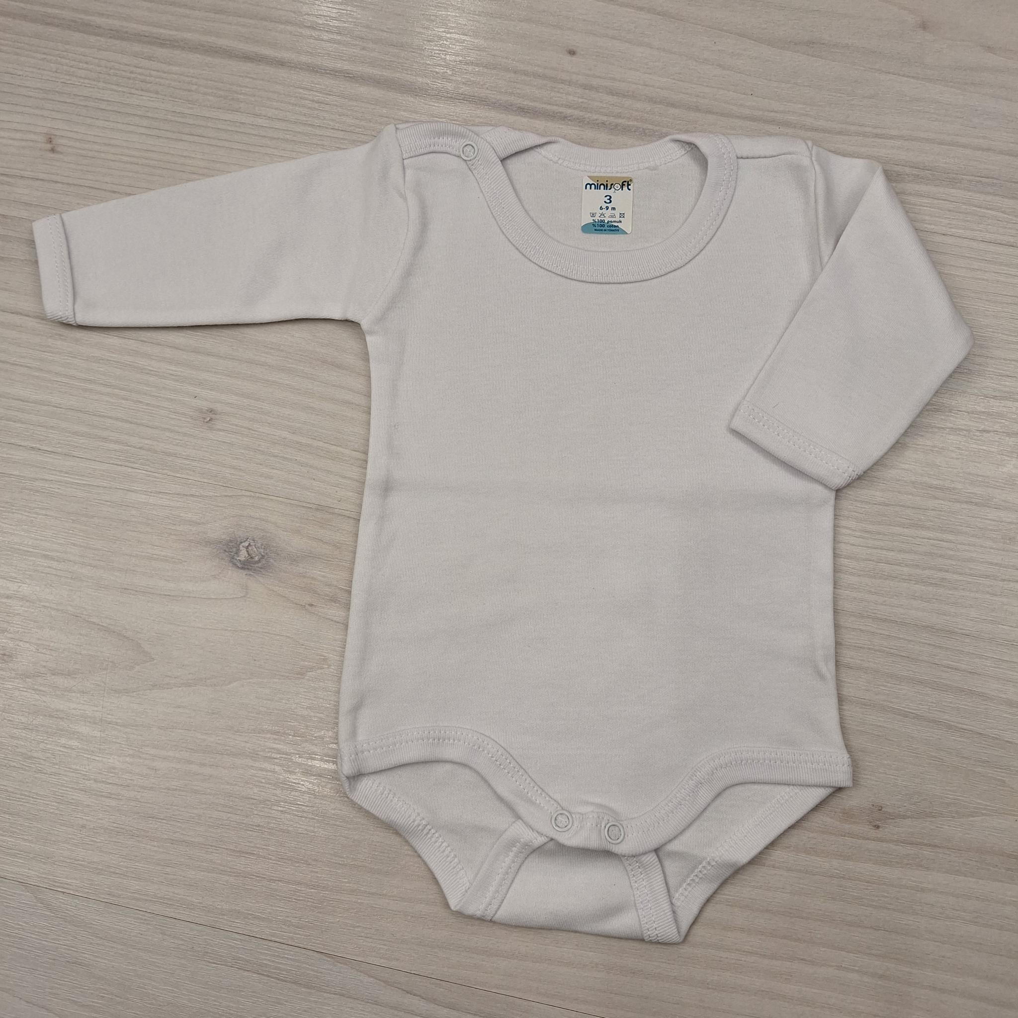Minisoft Klasszikus hosszú ujjú baba body, ami kényelmes alapdarab a mindennapokra.