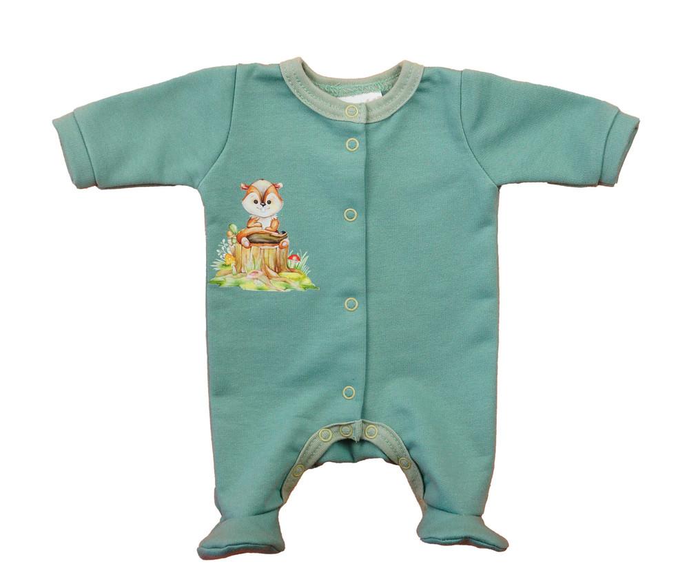 Hosszú ujjú belül bolyhos, elöl patentos rugdalózó Állatos mintával