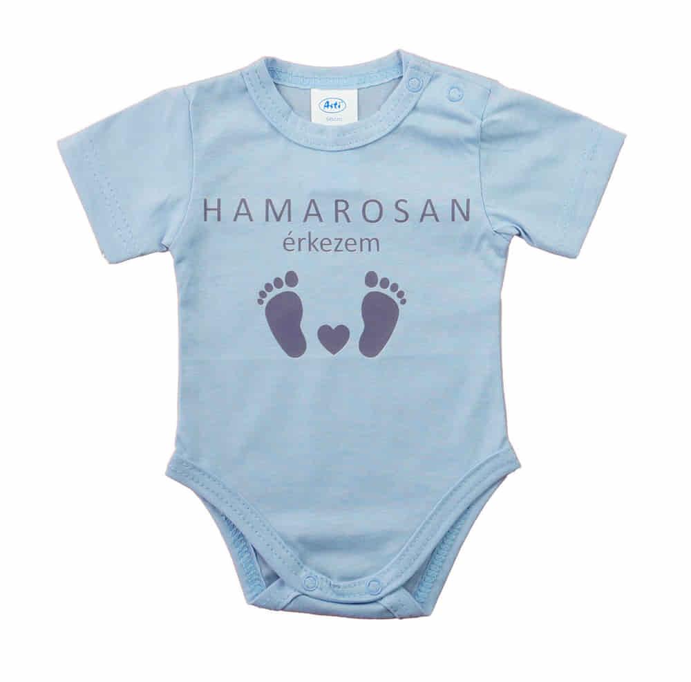 Hamarosan érkezem újszülött baba body, babaváró ajándék