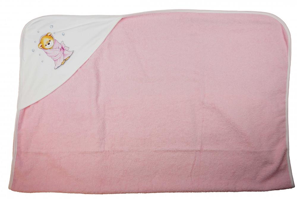 Kényeztesd a család legkisebb tagját ezzel a rózsaszín, macis mintával díszített kapucnis törölközővel!