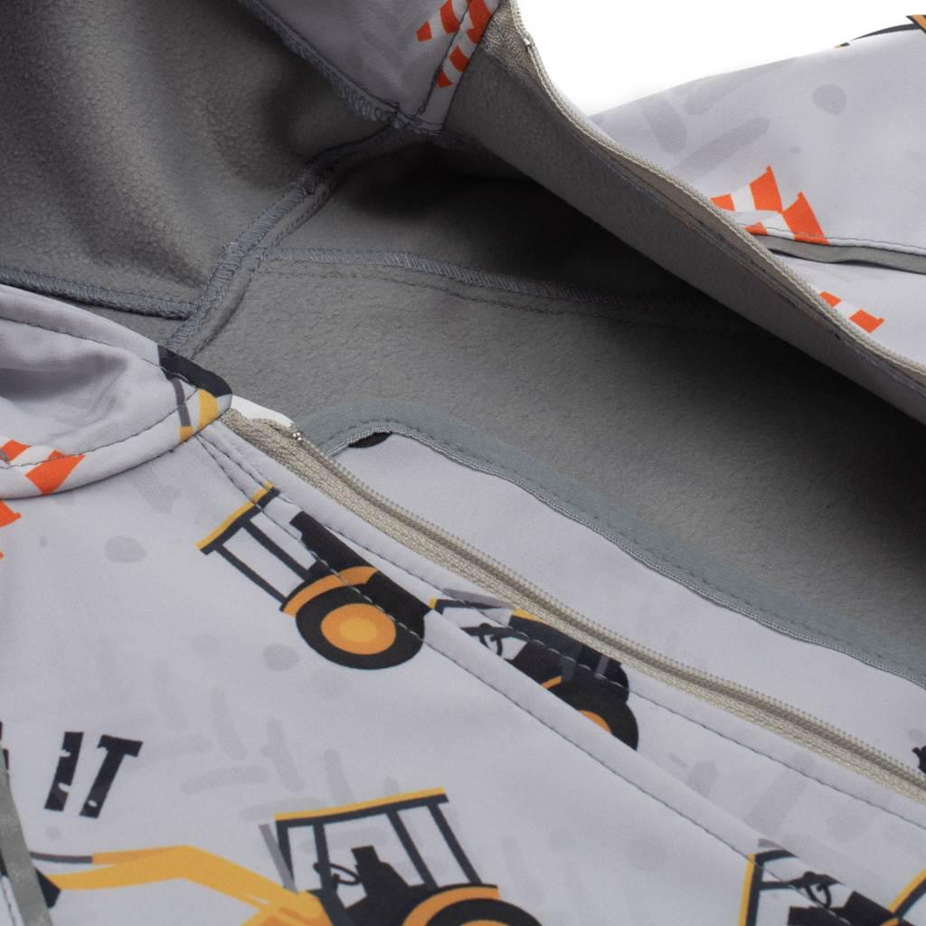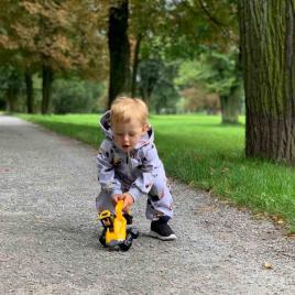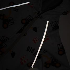 Az ujjak fényvisszaverő csíkokkal rendelkeznek. A softshell overál alkalmas utcai sétákra, szabadban töltött időre. Szélálló és lélegző tulajdonságokkal. A baba nagyon kellemesen fogja érezni magát benne.