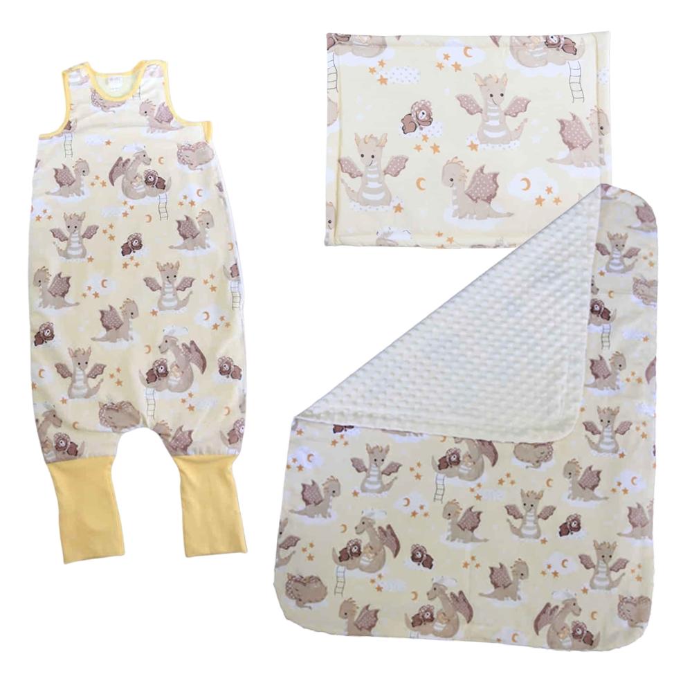 Ezzel a 3 részessárkánymintás alvós baba csomaggal biztosíthatod, hogy a babád mindig melegen és kényelmesen aludjon, miközben egy aranyos sárkánymintás stílusban is pompázik.