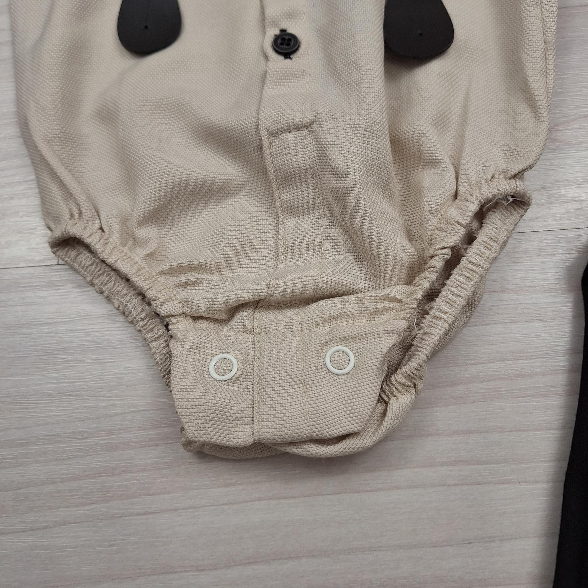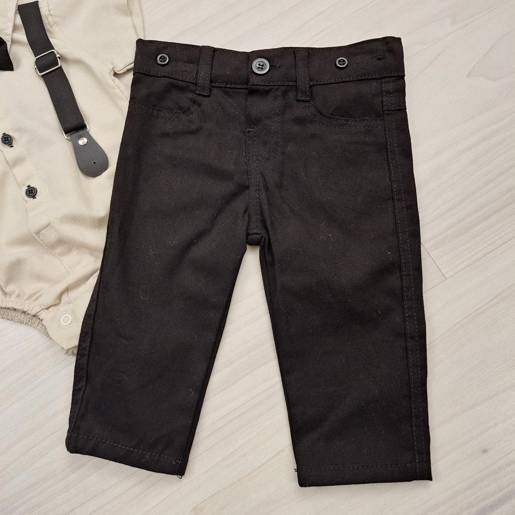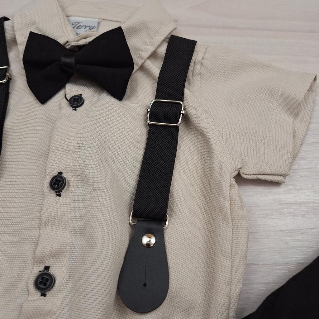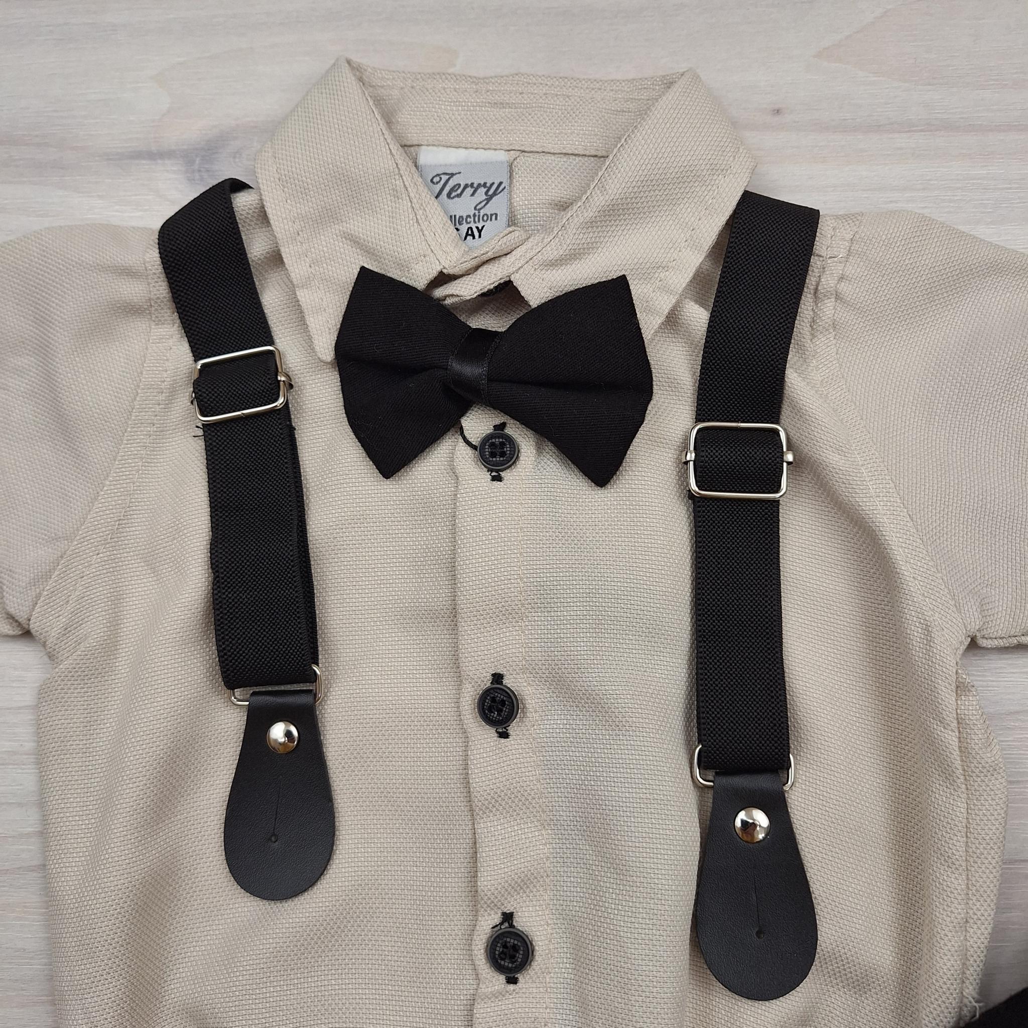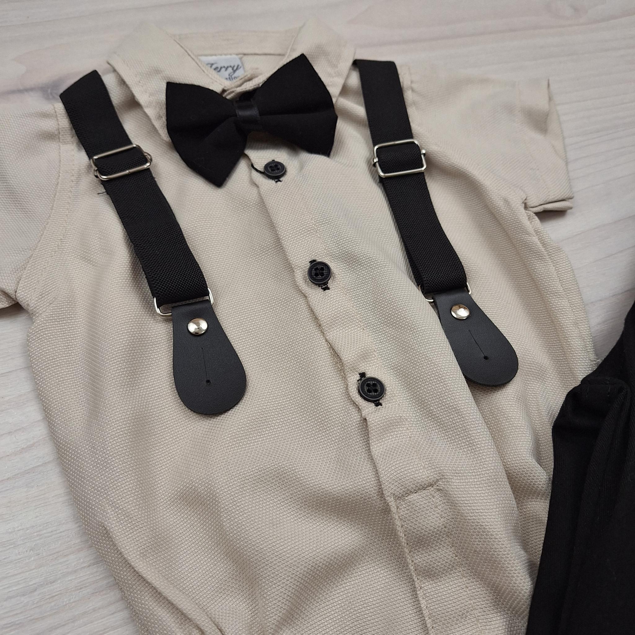 Baba alkalmi szett kisfiúknak bézs bodyval, fekete nadrággal és kiegészítőkkel