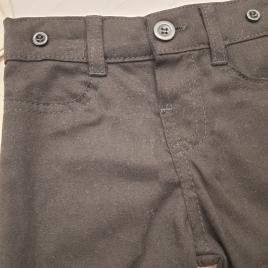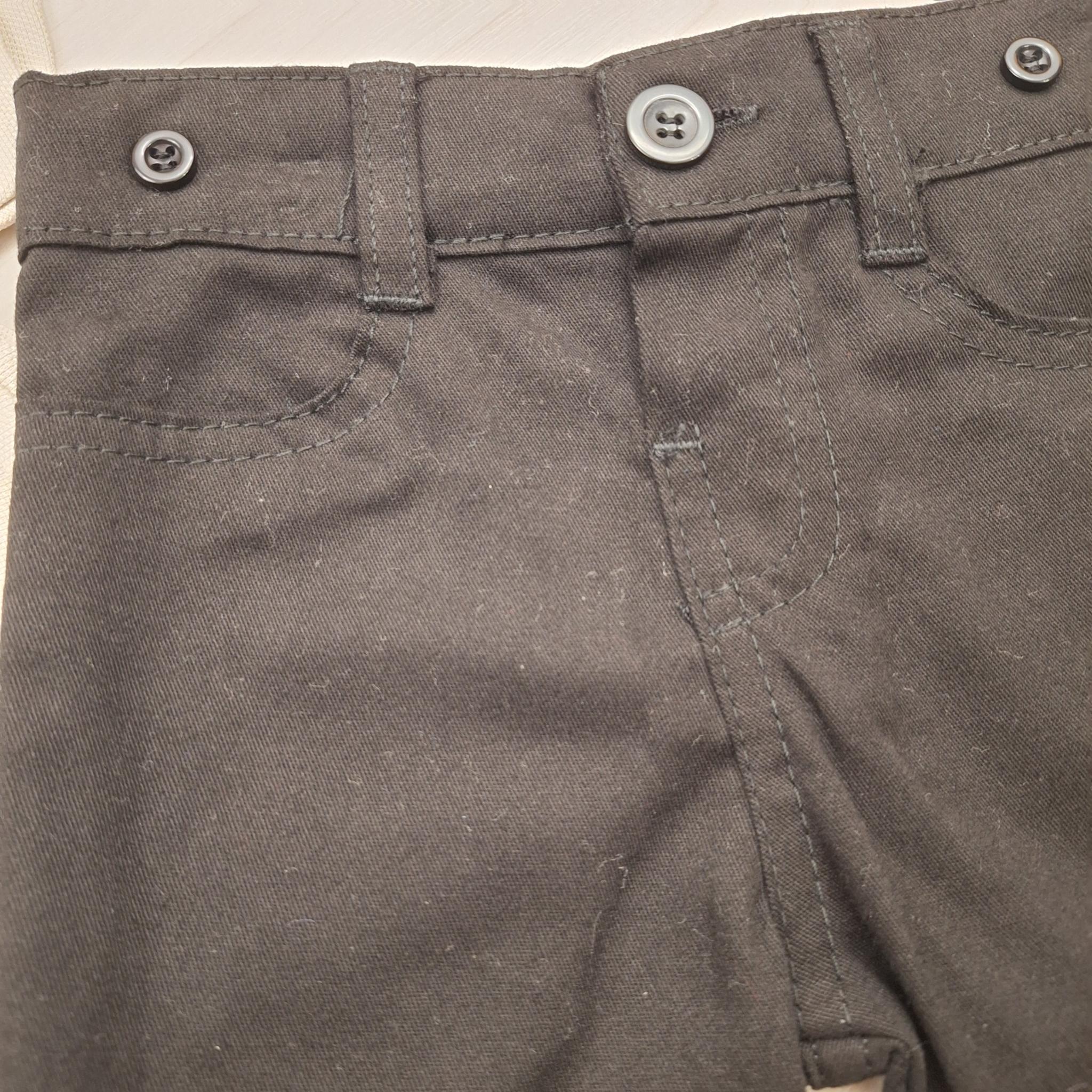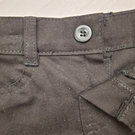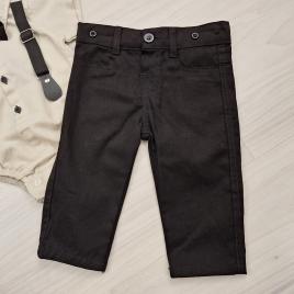 A fekete vászonnadrág klasszikus megjelenést kölcsönöz, miközben megőrzi a kényelmet. Elöl és hátul is két-két zsebbel rendelkezik, a belsejében pedig állítható gumis derékrész található, így tökéletesen igazítható a baba méretéhez.