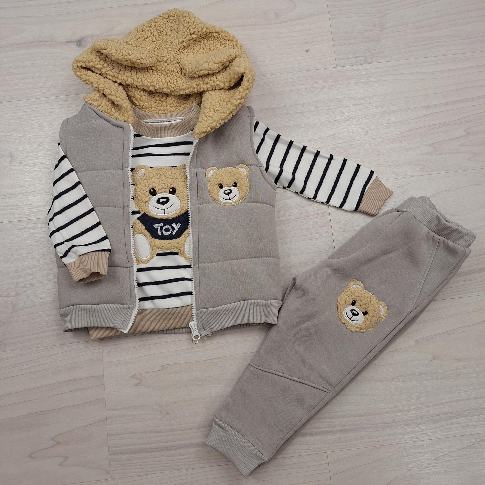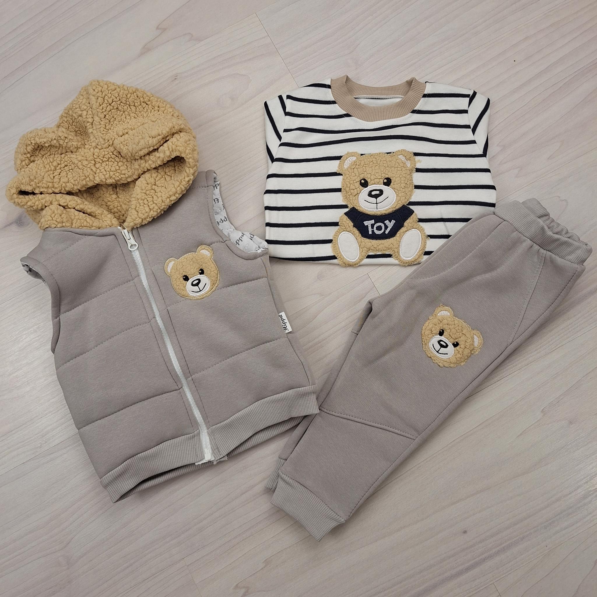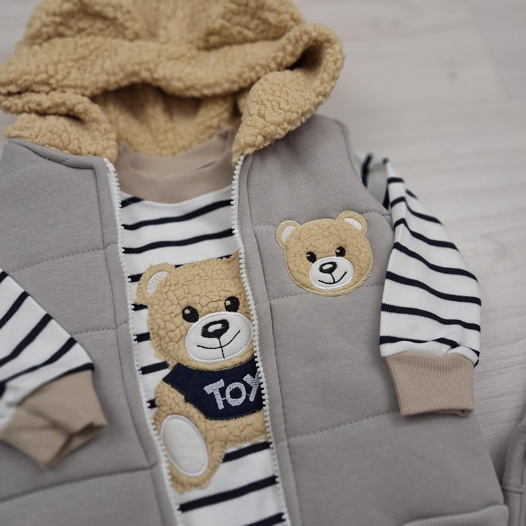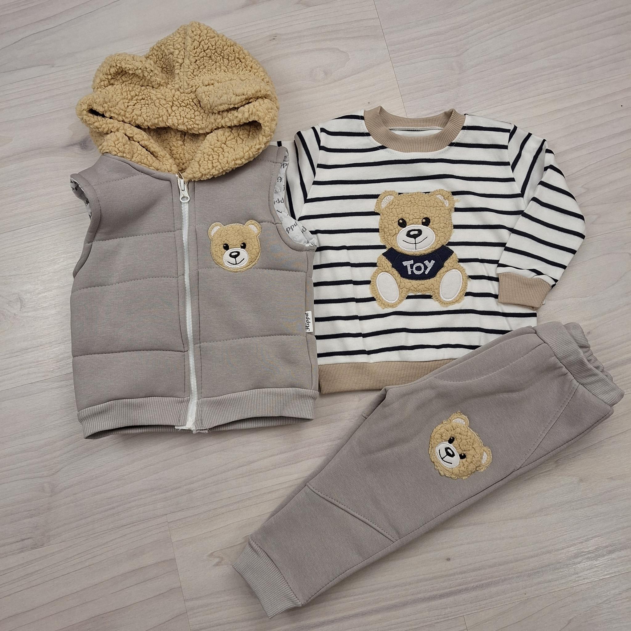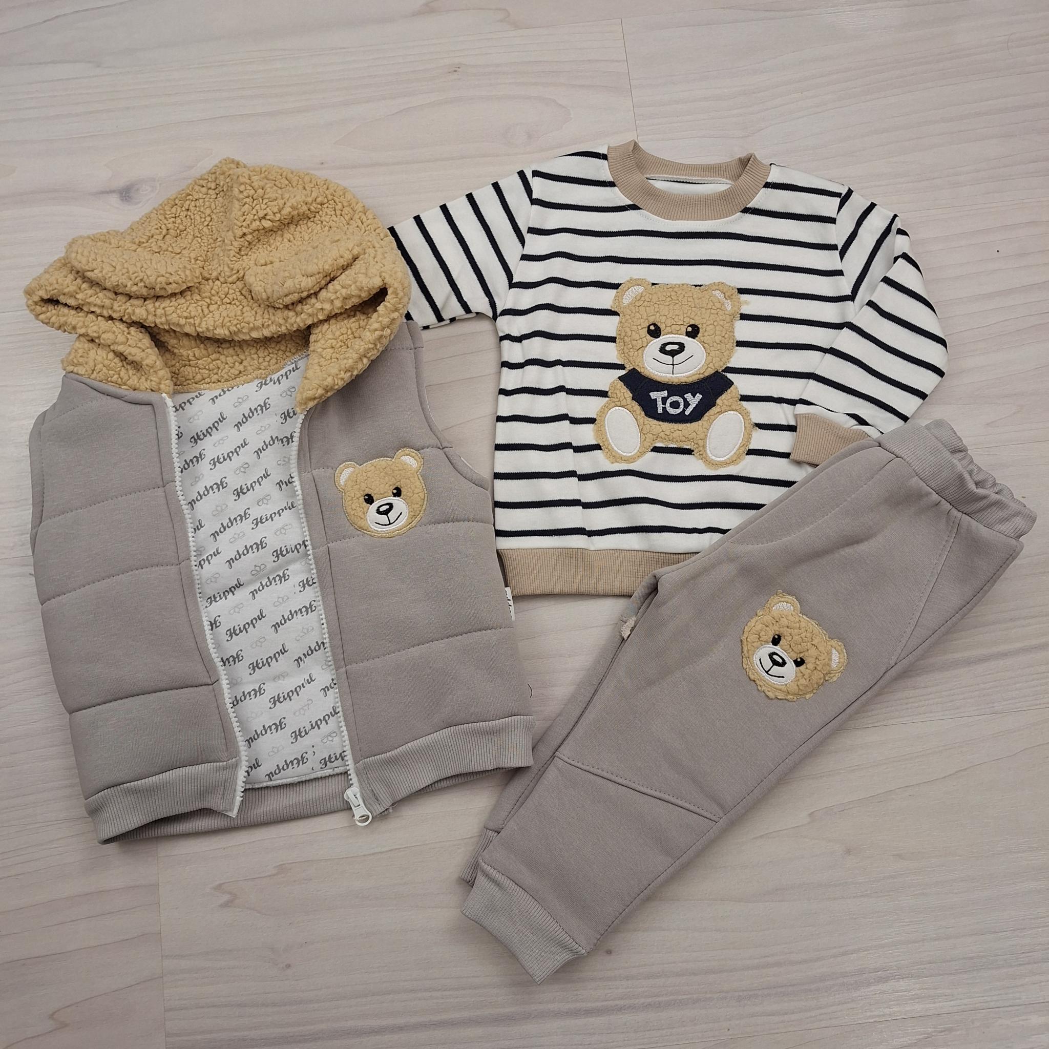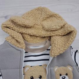 Ez a gyönyörű őszi–téli 3 részes babaszett tökéletes választás a hűvös napokra, amikor fontos, hogy a kicsi kényelmesen és melegen legyen öltöztetve.