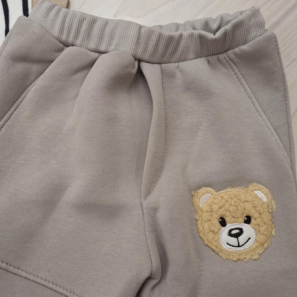 A nadrág puha pamut anyagból készült, derékrésze kényelmes gumírozást kapott, így nem szorítja a kis pocakot. Maci mintája harmonizál a felsővel, így a szett igazán összhangban van.