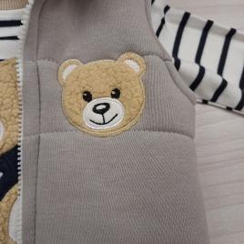 A felső vidám, csíkos mintát és aranyos maci grafikát kapott, így önmagában is tökéletes választás hétköznapokra vagy bölcsibe, óvodába.