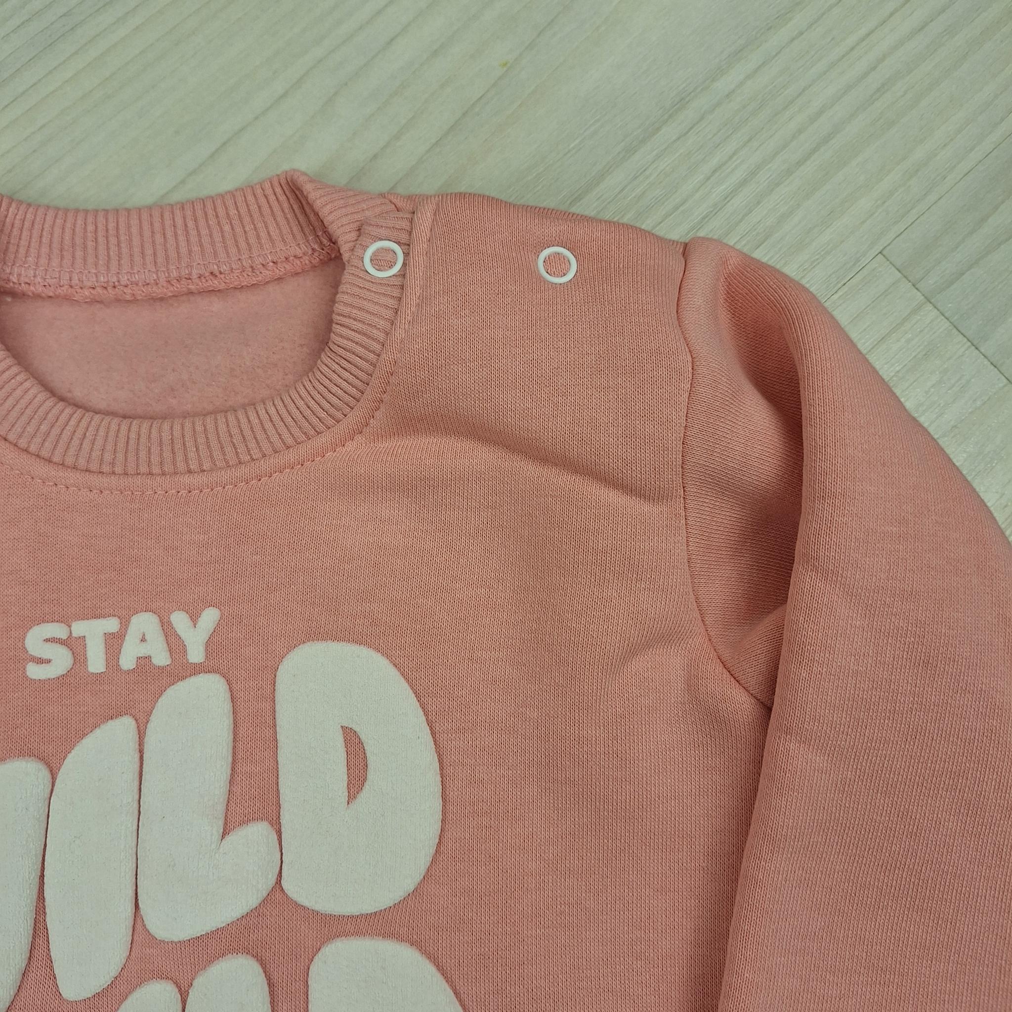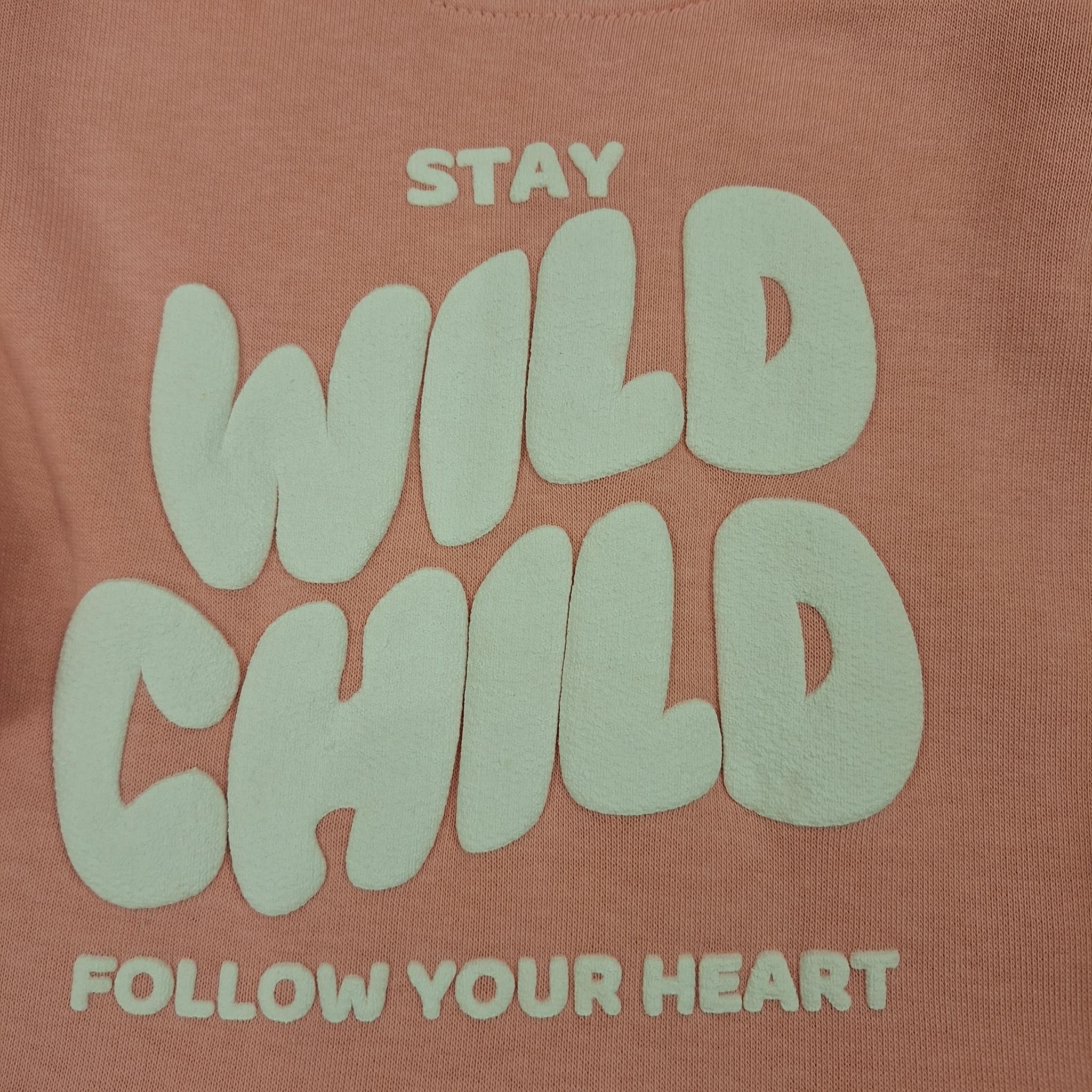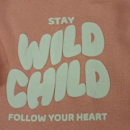 A felső meleg, bolyhos belsővel készült, így maximális kényelmet nyújt a kislányoknak. Passzés ujjvégekkel, amelyek praktikusak és szépen tartják a formát. A „Stay Wild Child Follow Your Heart” felirat inspiráló, vagány hangulatot kölcsönöz.