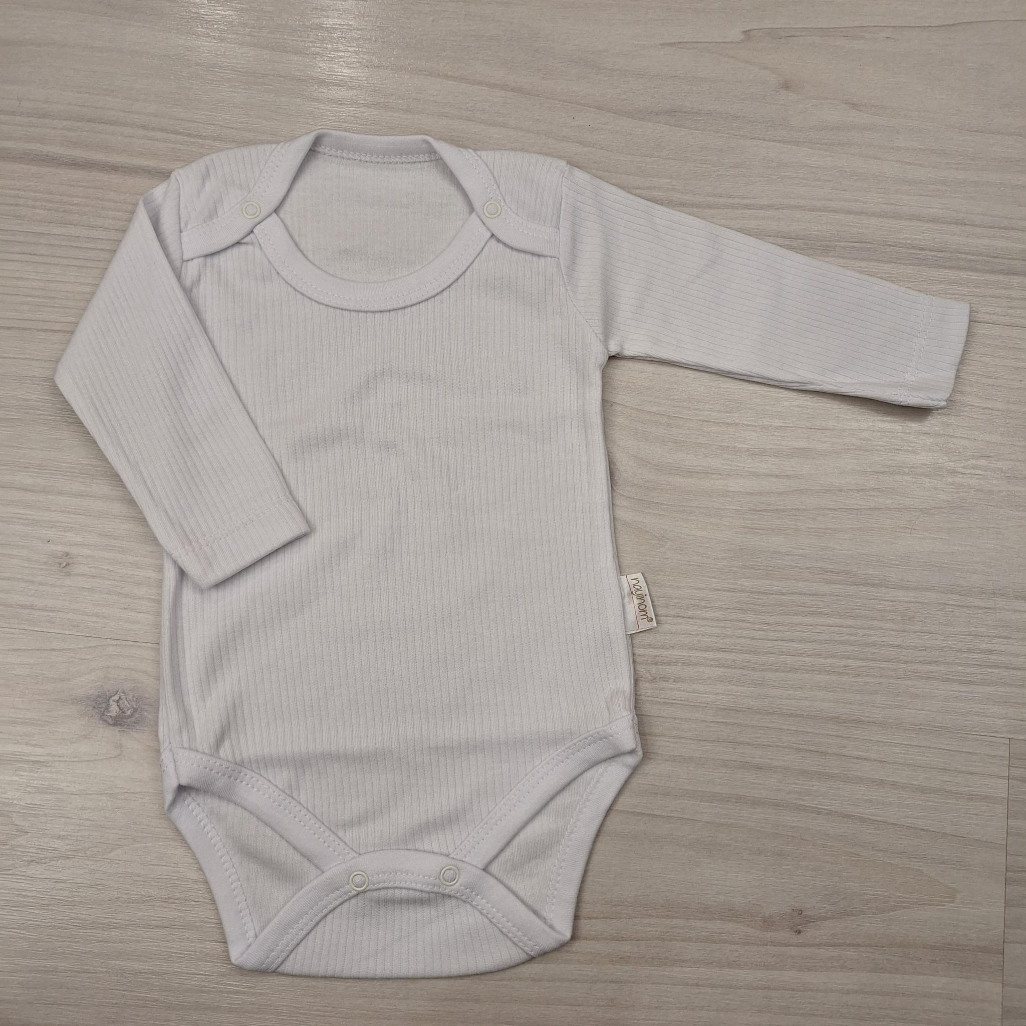 Ez a klasszikus kialakítású, hosszú ujjú baba body tökéletes választás a mindennapi öltöztetéshez. Az anyagában bordázott mintázat nemcsak esztétikus, hanem kellemesen rugalmas érzetet is ad.