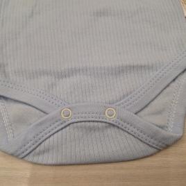 A body 100% pamutból készült, amely puha, bőrbarát és jól szellőzik. Ideális az érzékeny bababőr számára. A vállrészen mindkét oldalon egy-egy patent található, az ülepénél pedig szintén patentos záródás segíti a gyors és könnyű öltöztetést és a pelenkázást.