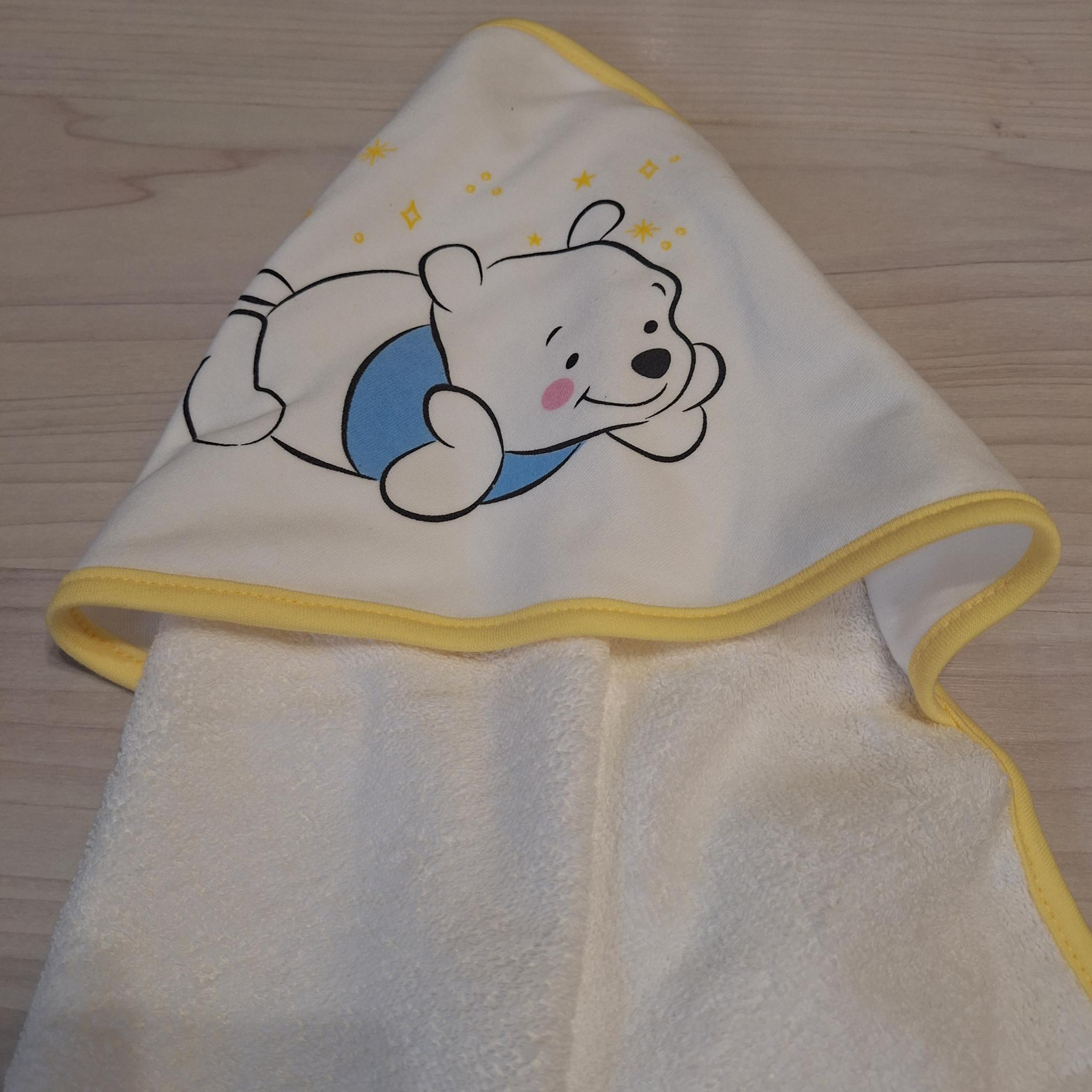 Kényeztesd csöppségedet ezzel a Micimackó mintás baba kapucnis törölközővel, amelyen cuki minta díszeleg!