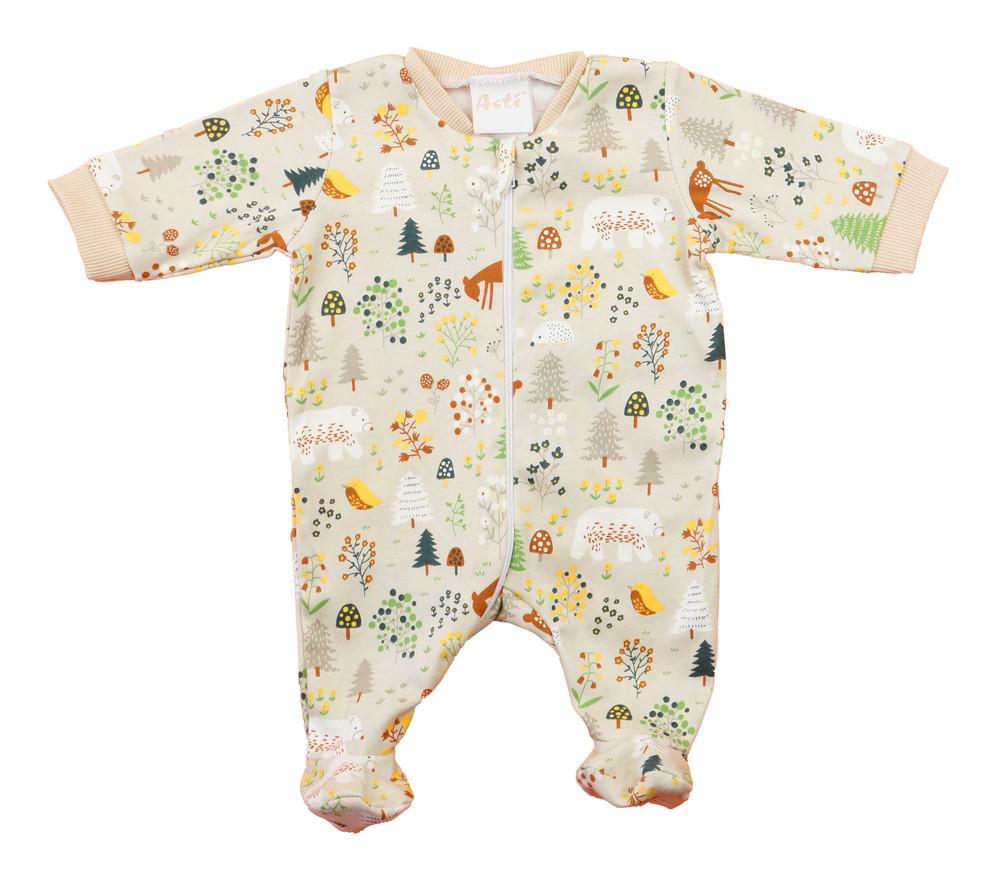 Vékony baba rugdalózó erdei mintával